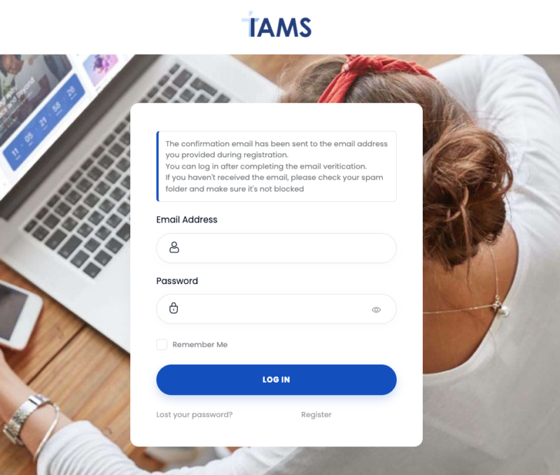 You will then see the following message: "The confirmation email has been sent to the email address you provided during registration.You can log in after completing the email verification.If you haven't received the email, please check your spam folder and make sure it's not blocked." This means the confirmation email has been sent successfully.