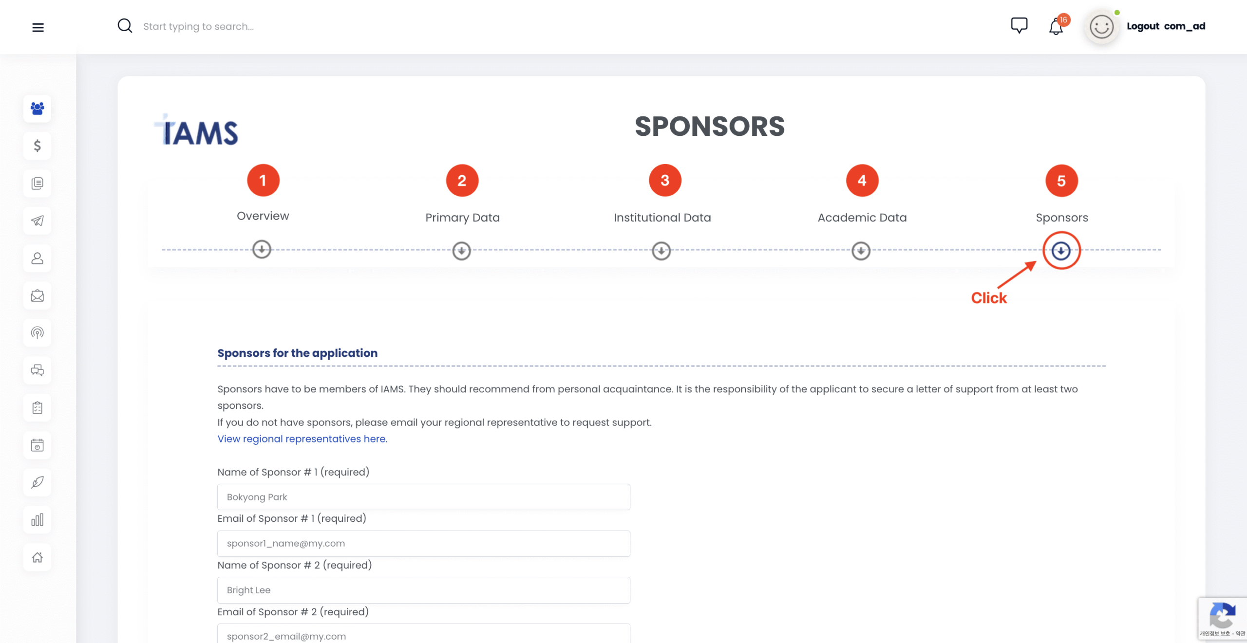 6. You need two sponsors. Sponsors must be members of IAMS and should be able to recommend you based on personal acquaintance. It is the applicant’s responsibility to secure letters of support from at least two sponsors. If you do not have sponsors, please email your regional representative to request support.