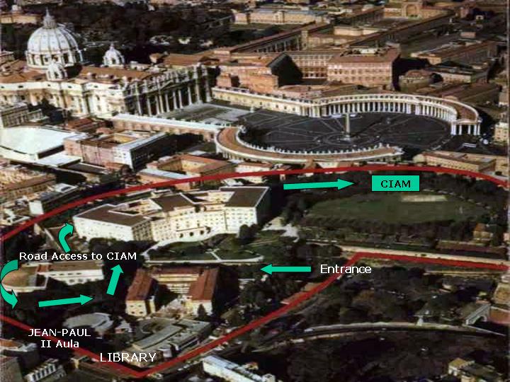 is at the bottom left, and the Jean-Paul II Aula is just above it towards the